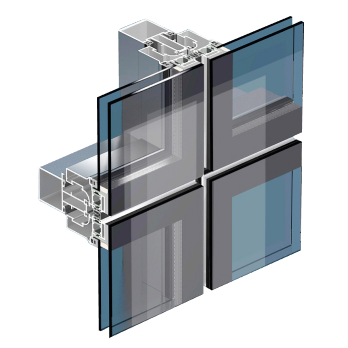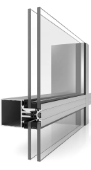 Это сочетание прочности стоечно-ригельной системы и структурного остекления. Здесь стекло или стеклопакет соединяются с несущим профилем с помощью тонких прижимных штапиков, которые окантовывают стекло по всему периметру, минимально перекрывая его внешнюю поверхность. В отличие от структурного остекления, эта система позволяет использовать большие стеклопакеты и интегрировать открывающиеся элементы в фасад.